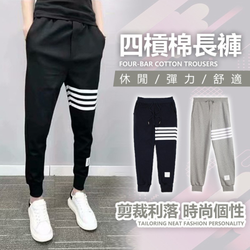 男女潮流休閒長褲 個性四槓輕薄款九分褲 縮口褲 休閒長褲 輕薄不悶熱