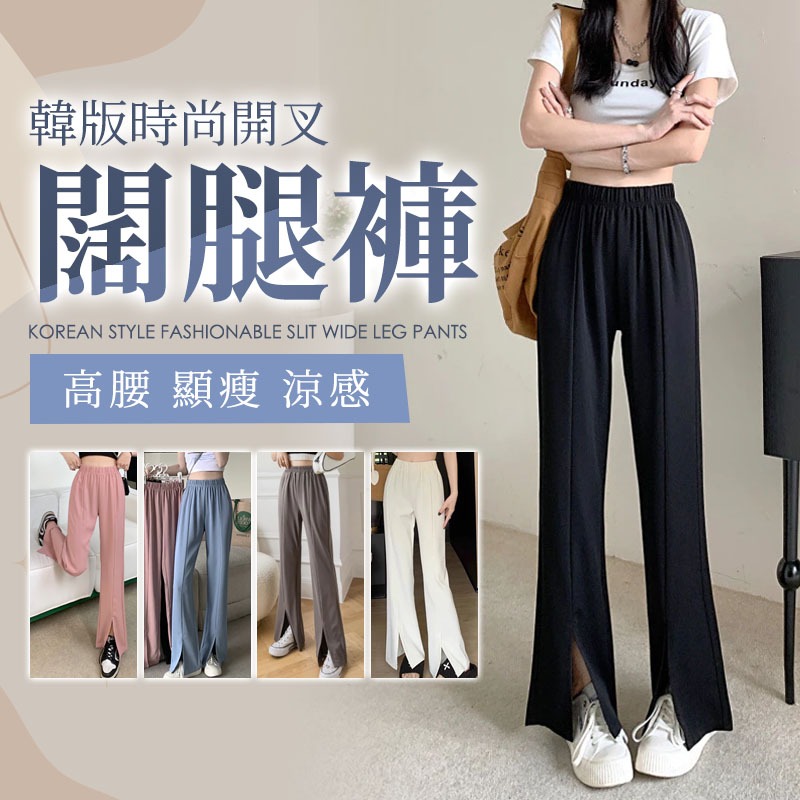 韓版時尚開叉闊腿褲 開叉高腰長褲 直筒高腰褲 落地褲