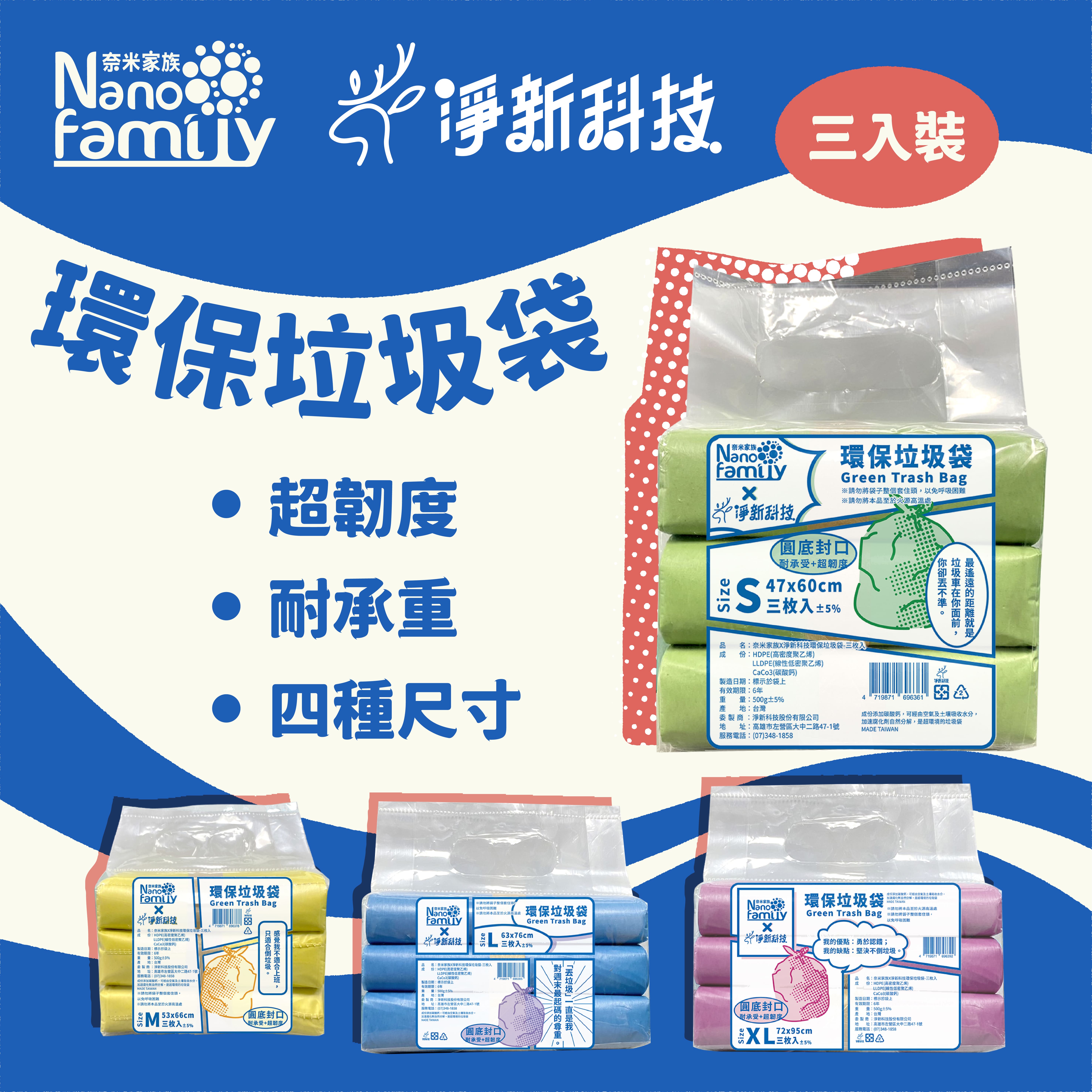 環保垃圾袋3卷一包-4種可選