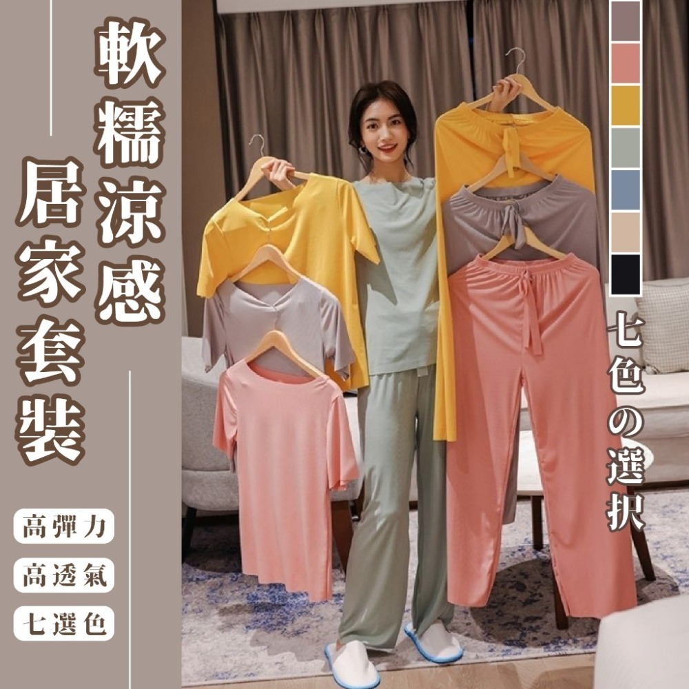 夏季薄款素色家居服套裝 2件式睡衣 2件式懶人睡衣 家居服睡衣