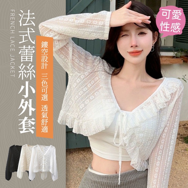 新款法式蕾絲罩衫 性感小披肩 摟空感罩衫 空調罩衫 防曬罩衫