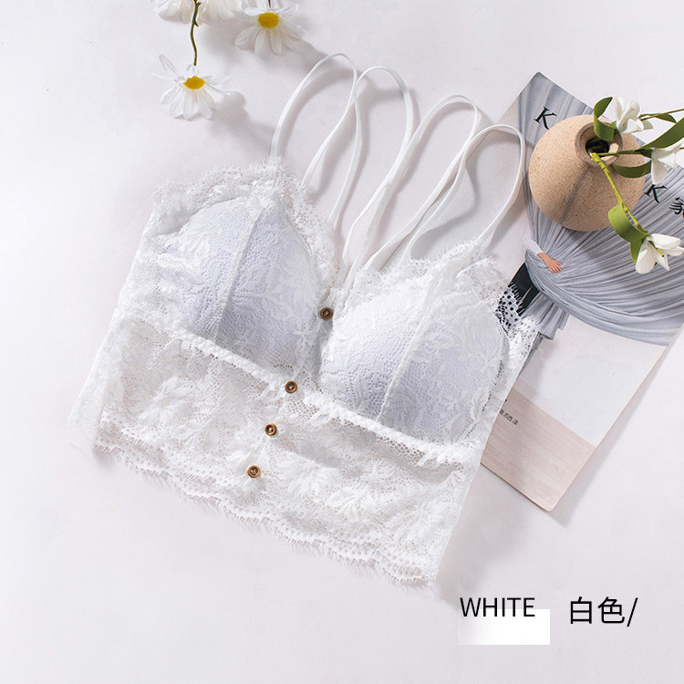 法式蕾絲 性感繞頸雙細肩帶Bar背心 蕾細肩帶背心 鈕扣設計感