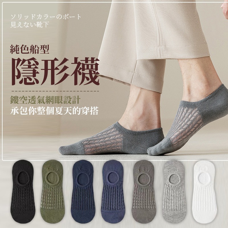 男款百搭簍空透氣淺口純色船襪薄款隱形襪 不掉跟 男士隱形襪