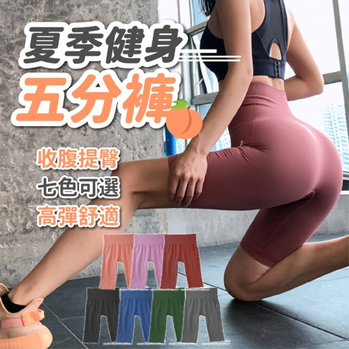 高腰瑜伽健身運動收腹提臀緊身彈性短褲 五分褲 高彈力收腹