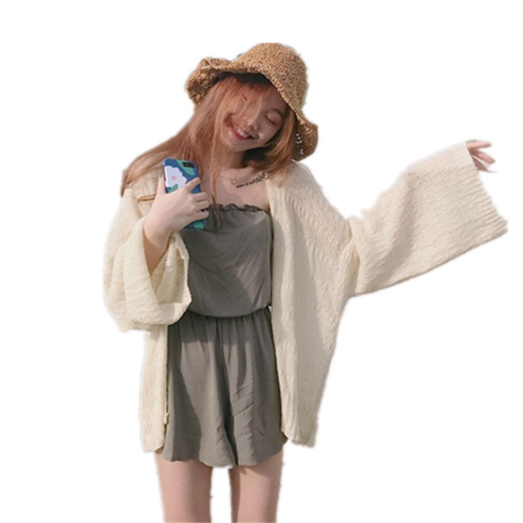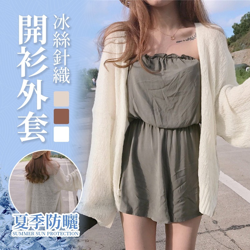 薄款針織夏季寬鬆韓版長袖冰絲防曬罩衫 夏季海灘 百搭顯瘦罩衫