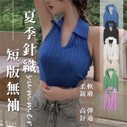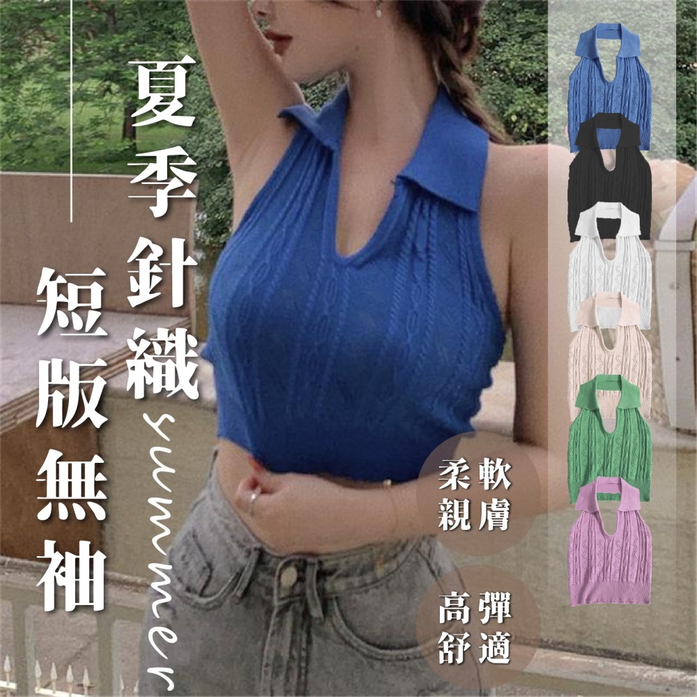 V領針織麻花紋掛脖背心 素色網眼針織背心 辣妹短款露背露臍上衣 冰絲針織背心 螺紋麻花簍空上衣 掛脖上衣