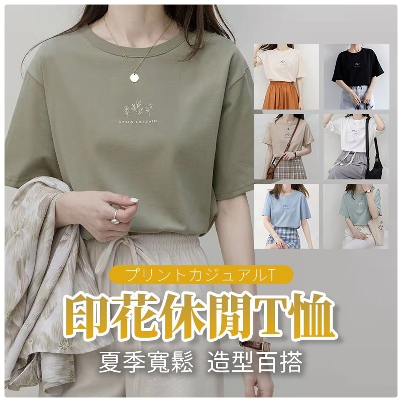 夏季短袖休閒印花休閒T恤 多色小花文字T 小花文字上衣 女生短袖