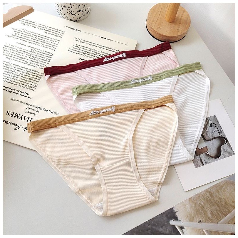 日系糖果三角內褲 簡約螺紋 性感窄邊 彈力皮筋 拚色低腰三角內褲 低腰三角褲 女內褲 舒適內褲