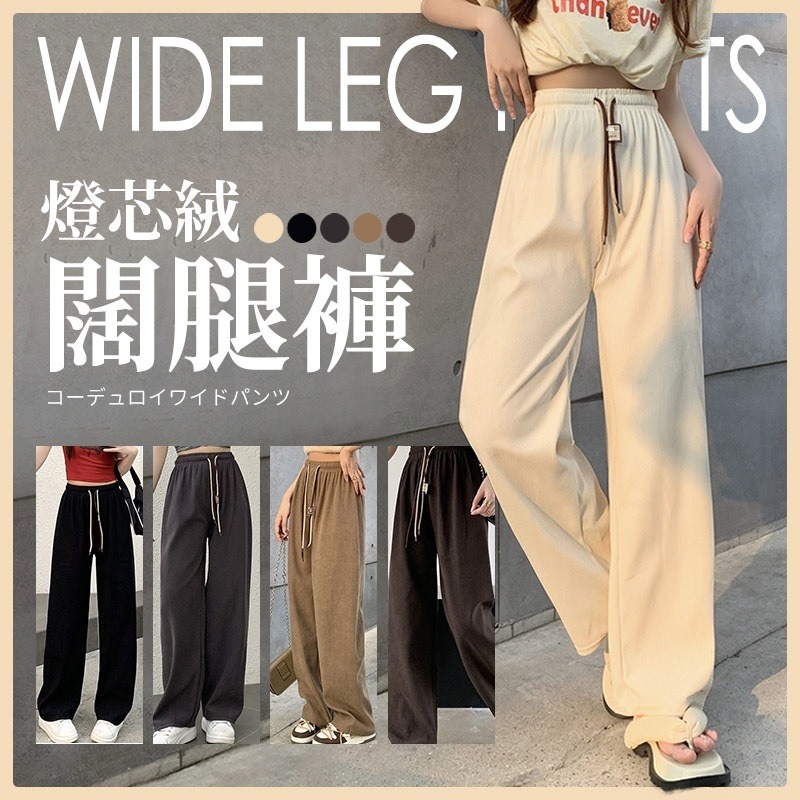【JDUDS】高腰闊腿褲 燈芯絨高腰闊腿褲 雙抽繩笑臉高腰闊腿褲 雙抽繩高腰寬褲 高腰寬鬆落地褲 寬鬆顯瘦落地褲 高腰落地寬褲