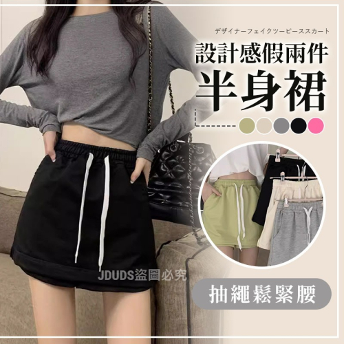 【JDUDS】設計感假兩件半身裙 鬆緊抽繩性感包臀裙 休閒短褲裙 內裡有安全褲