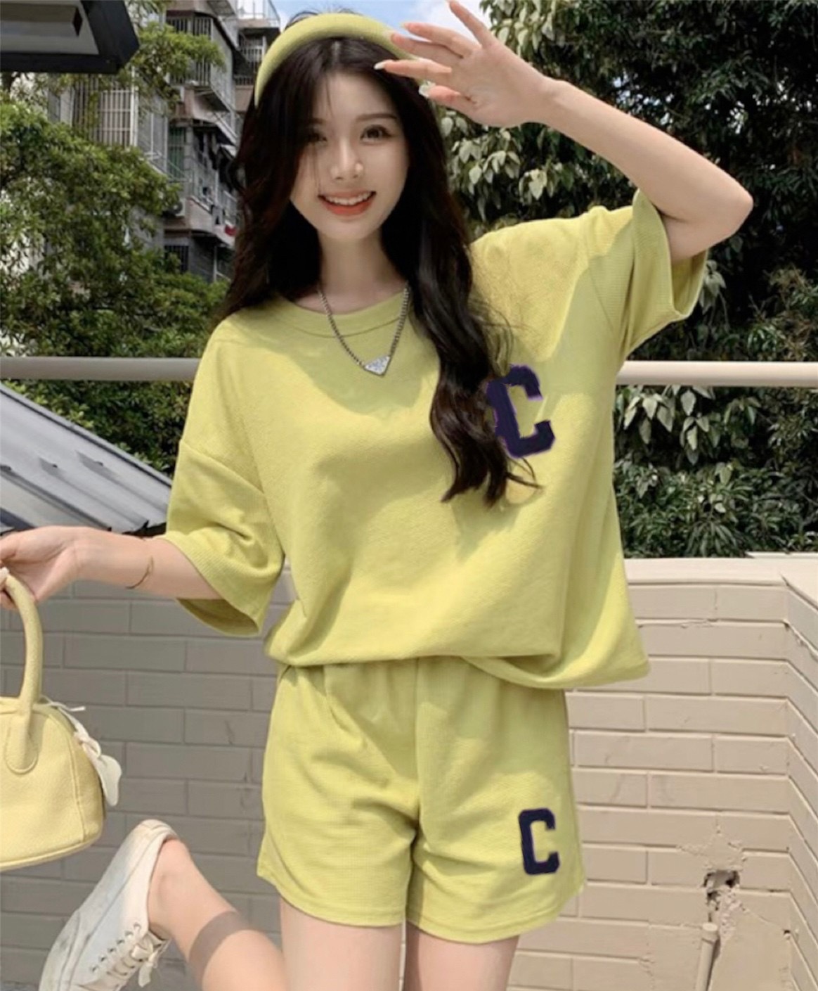 ◈新款休閒字母刺繡T恤 刺繡套裝