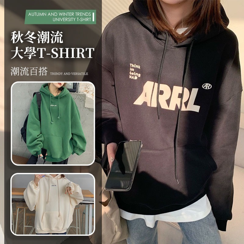 【台灣現貨】 秋冬潮流大學T 大字母慵懶風格帽T 寬鬆百搭連帽T恤 連帽長袖T恤 薄刷毛帽T(ARRL)