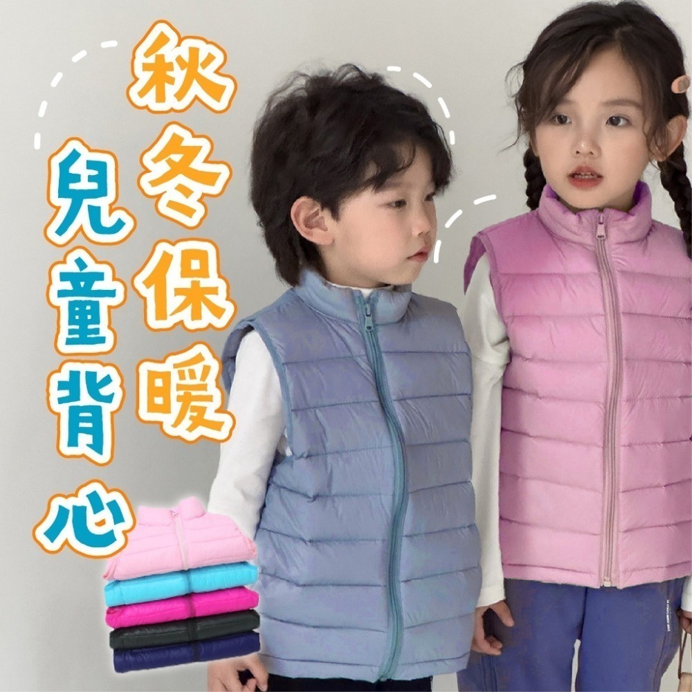 兒童羽絨綿馬甲背心 中大童純色外穿背心 無袖立領背心 羽絨保暖棉服 保暖防風馬甲 外穿短版馬夾外套