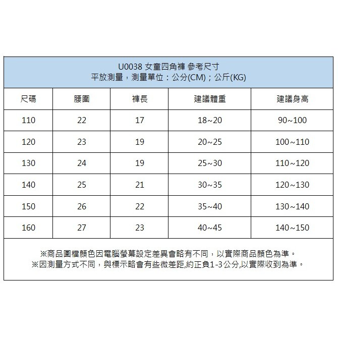 尺寸:110 / 120 / 130 / 140 / 150 / 160