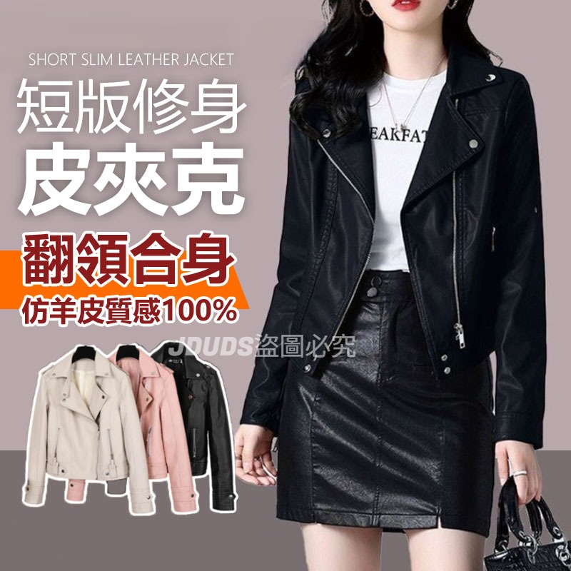 短版修身機車皮夾克 機車皮衣 短外套 皮夾克 潮流率性風(新款)