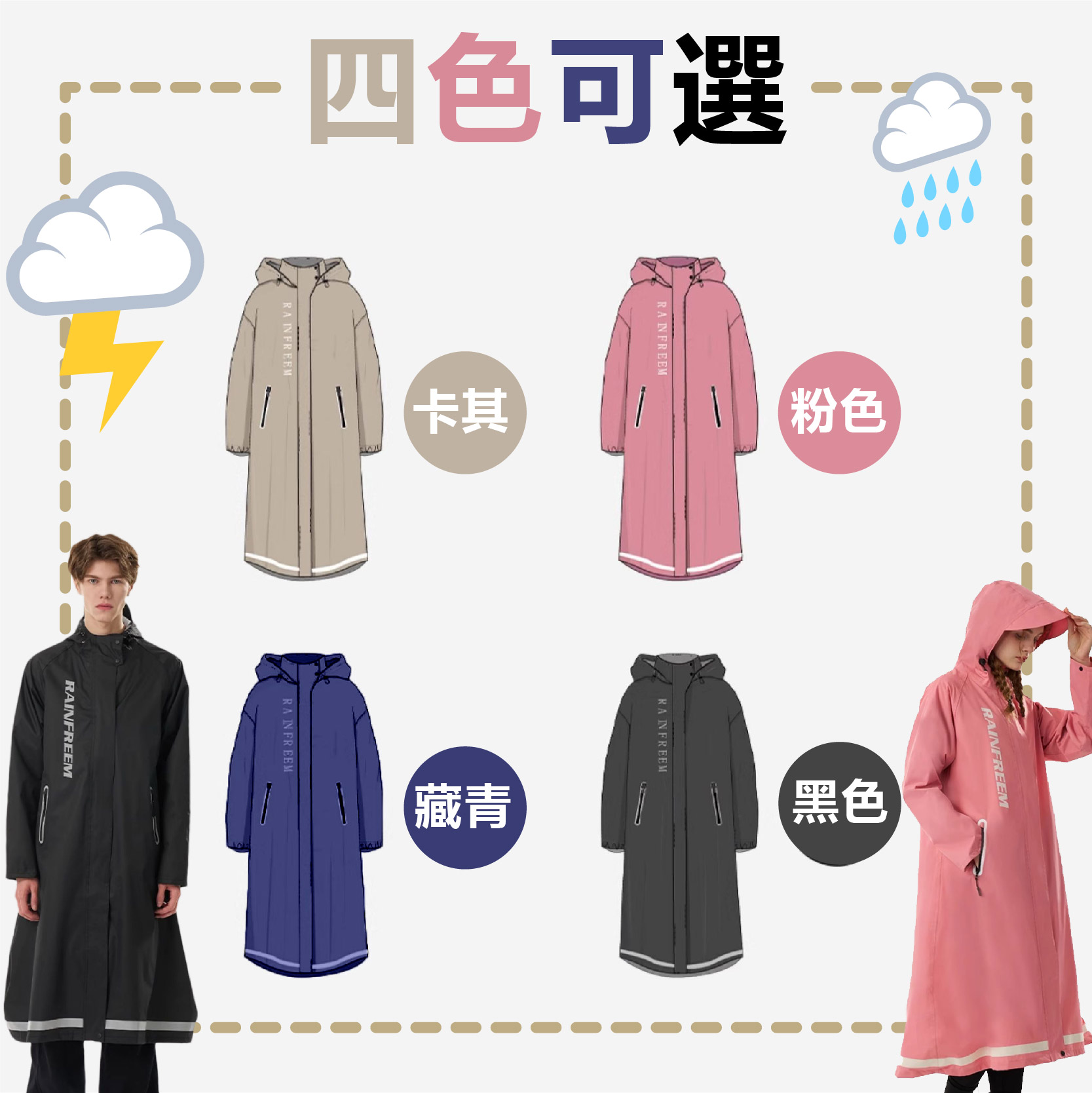 一件式風衣式雨衣 騎士雨衣 外送裝備 成人雨衣 防暴雨 反光雨衣 時尚雨衣