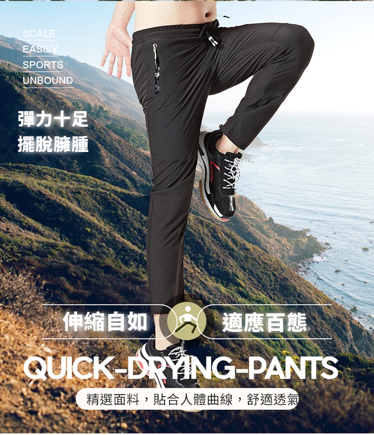男女休閒彈力速乾長褲 抽繩運動褲 休閒長褲 工作褲 修身衛褲