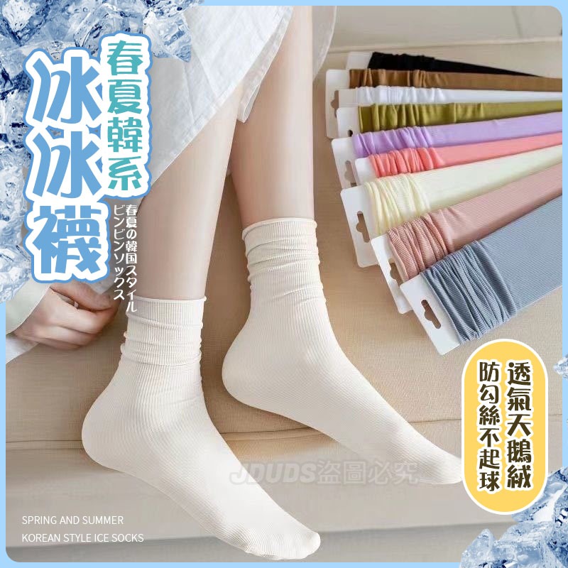 【JDUDS】春夏韓系冰冰襪 襪子 女中筒襪 女襪 薄款襪 糖果色襪 堆堆襪 推推襪 透氣襪