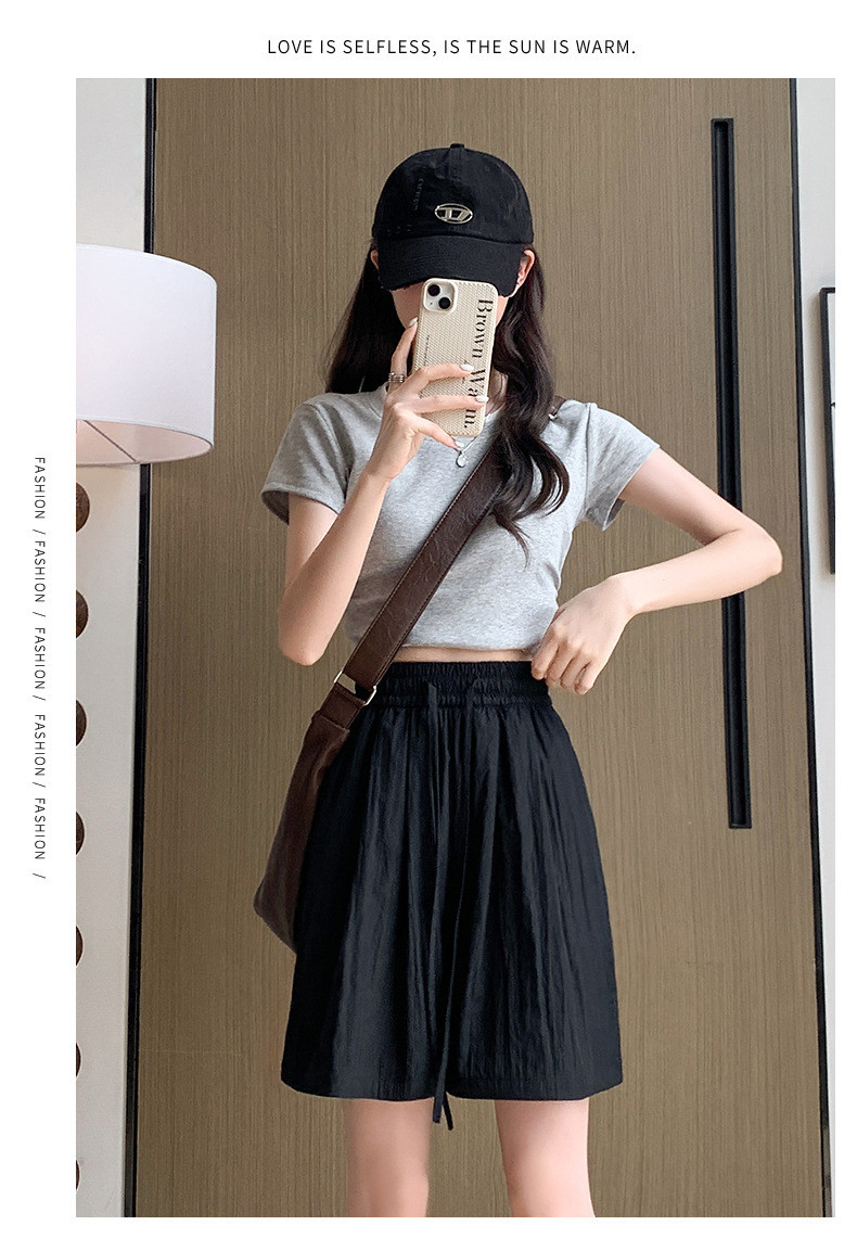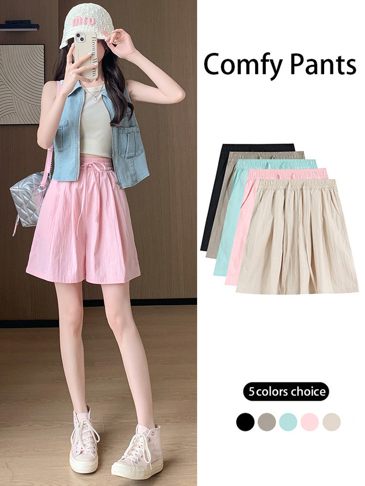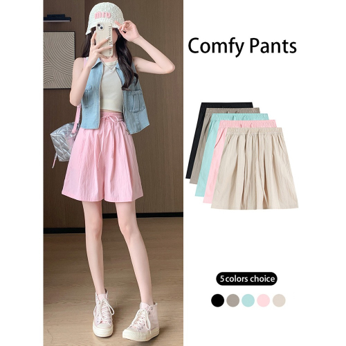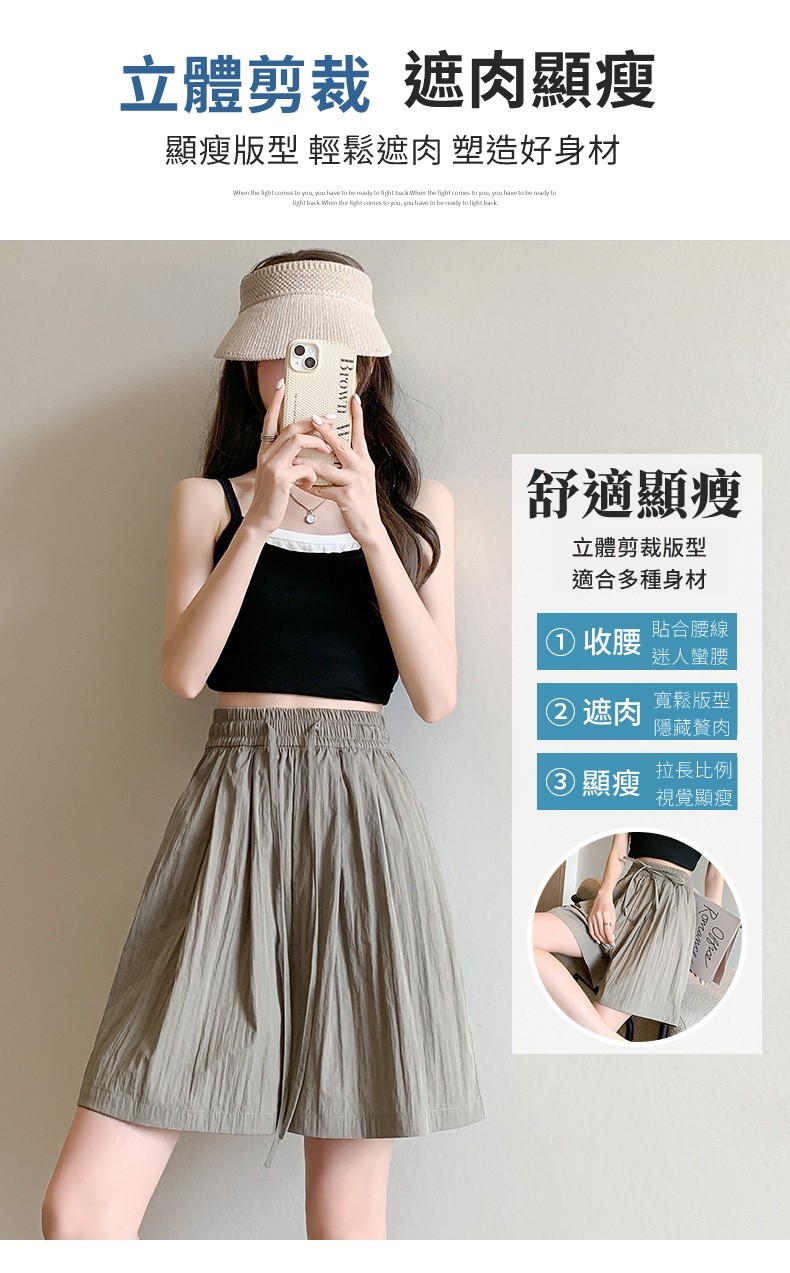 【JDUDS】夏季薄款冰絲山本五分褲 寬鬆顯瘦短褲 女五分褲 高腰闊腿褲 垂墜感褲 女短褲 休閒短褲 日系短褲