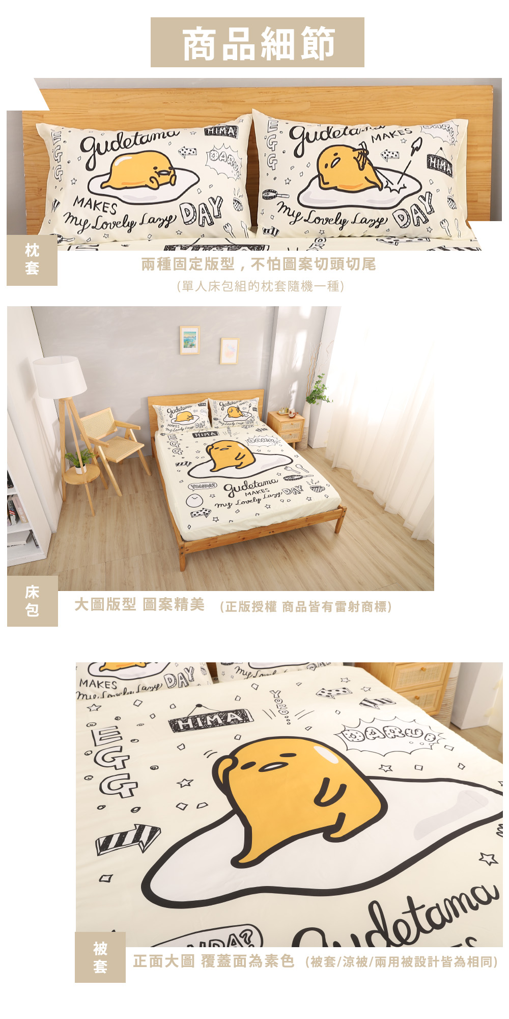 [送玩偶]日本授權 三麗鷗 蛋黃哥系列床包組 [今日休假中] / 被套 /兩用被套/ 涼被 贈品詳情請參考商品敘述