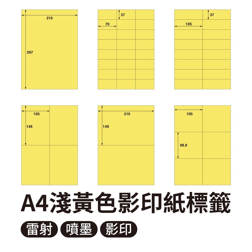 A4三用電腦標籤貼紙 淺黃色 Y 20張/包