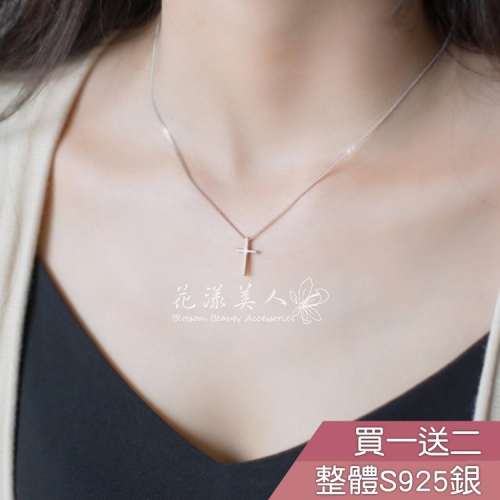 【整體925銀】買一送二 十字架項鍊 基督 天主教 生日禮物 交換禮物 聖誕節 💐花漾美人💐ALCN001