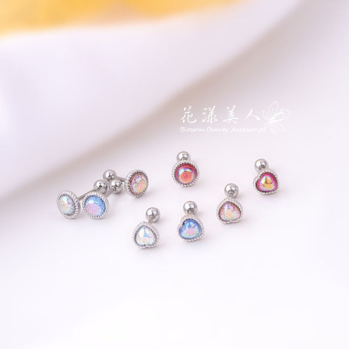 轉珠耳環 鎖珠耳環 螺旋耳針 鎖式耳環 實拍 醫療鋼耳針 鈦鋼 澳寶耳環 合成 澳寶幻彩幸運石*花漾美人*嚴選