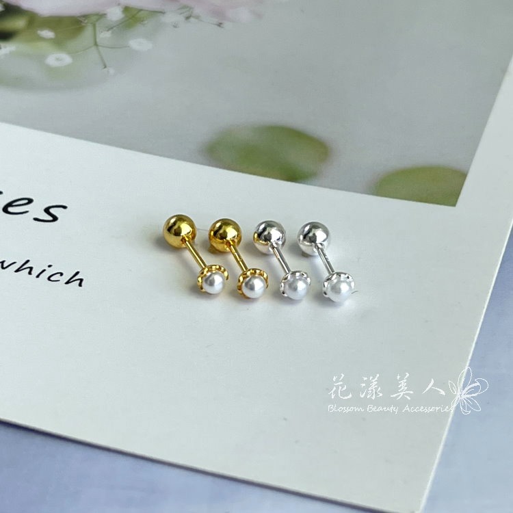 【整體s925銀】純銀耳環 轉珠耳環 鎖珠耳環 螺旋耳針 鎖式耳環 珍珠耳環 迷你花托珍珠*花漾美人*日韓嚴選
