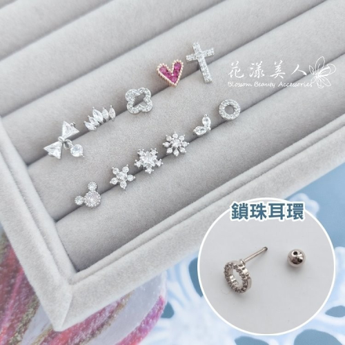轉珠耳環 鎖珠耳環 螺旋耳針 實拍 鎖式耳環 十字架 幸運草 蝴蝶結 多款可選 316L鈦鋼耳針*花漾美人*嚴選