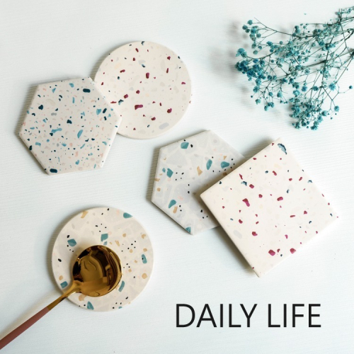 DAILY LIFE 珪藻土杯墊 水磨石花紋 矽藻土水杯墊
