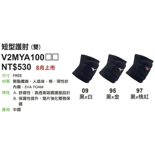 🏐⚽️乒冠體育🏸⚾️ Mizuno短型護肘(排球) V2MYA10009/ V2MYA10095/ V2MYA10097