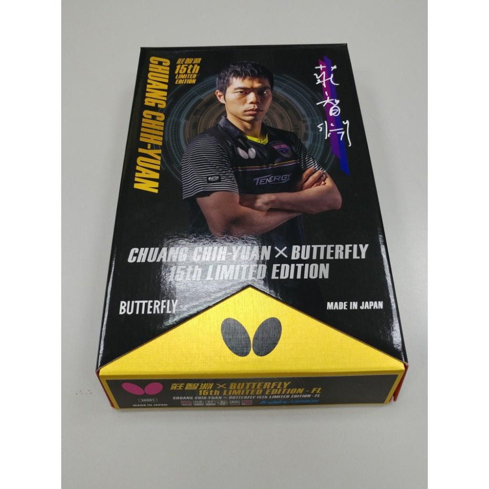 蝴蝶為紀念與莊智淵簽約15週年,特別為台灣設計莊智淵限量紀念球拍, 限量千支,唯一水號,彌足珍貴,絕不再版! 即日起 賣場下單貨到付款就送ROZENA球皮一張(黑或紅請自選)+蝴蝶環保手提袋(桃紅或黑隨機) 賣場下單貨到付款就送ROZENA球皮一張(黑或紅請自選)+蝴蝶環保手提袋(桃紅或黑隨機) 賣場下單貨到付款就送ROZENA球皮一張(黑或紅請自選)+蝴蝶環保手提袋(桃紅或黑隨機) ***一個編號限搭配一個球皮顏色,選購後該編號即售完 莊智淵限量球拍規格如下: 結構:五木+二ALC 握把型式:FL柄 拍面尺寸:157*150mm 握把尺寸:100*25mm 厚度:6.3mm 均重:89g(可選定您屬意的編號,恕不挑重) 支持並珍惜未來小莊在球場的每場比賽的莊迷們絕對不能錯過 **請注意本專案限貨到付款,信用卡結帳不適用哦!! **賣場編號拍限量5把(可選定您屬意的編號,恕不挑重)**