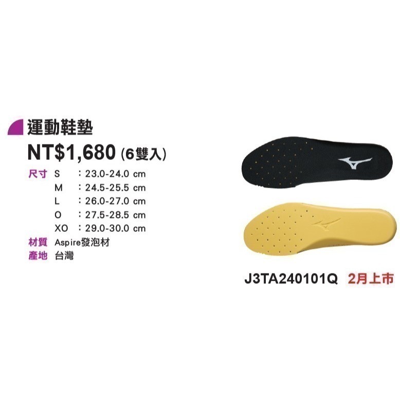 🏓🏐⚽️乒冠體育🏸⚾️🏓 Mizuno 機能慢跑鞋墊 J3TA230101 / J3TA240101