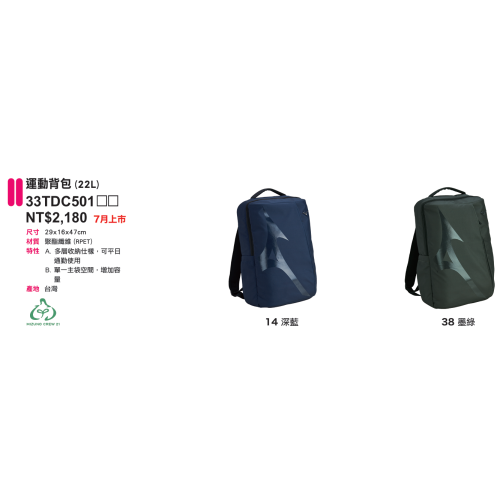 🏐⚽️乒冠體育🏸⚾️ Mizuno運動背包 33TDC50114 (22公升)