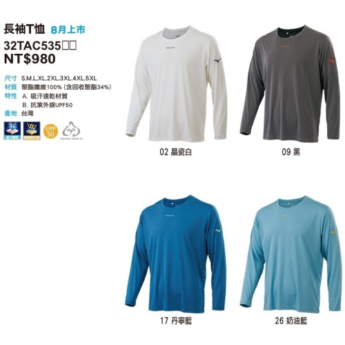 ⚽️乒冠體育🏓 Mizuno 美津濃 長袖T恤 32TAC53509 32TAC53517