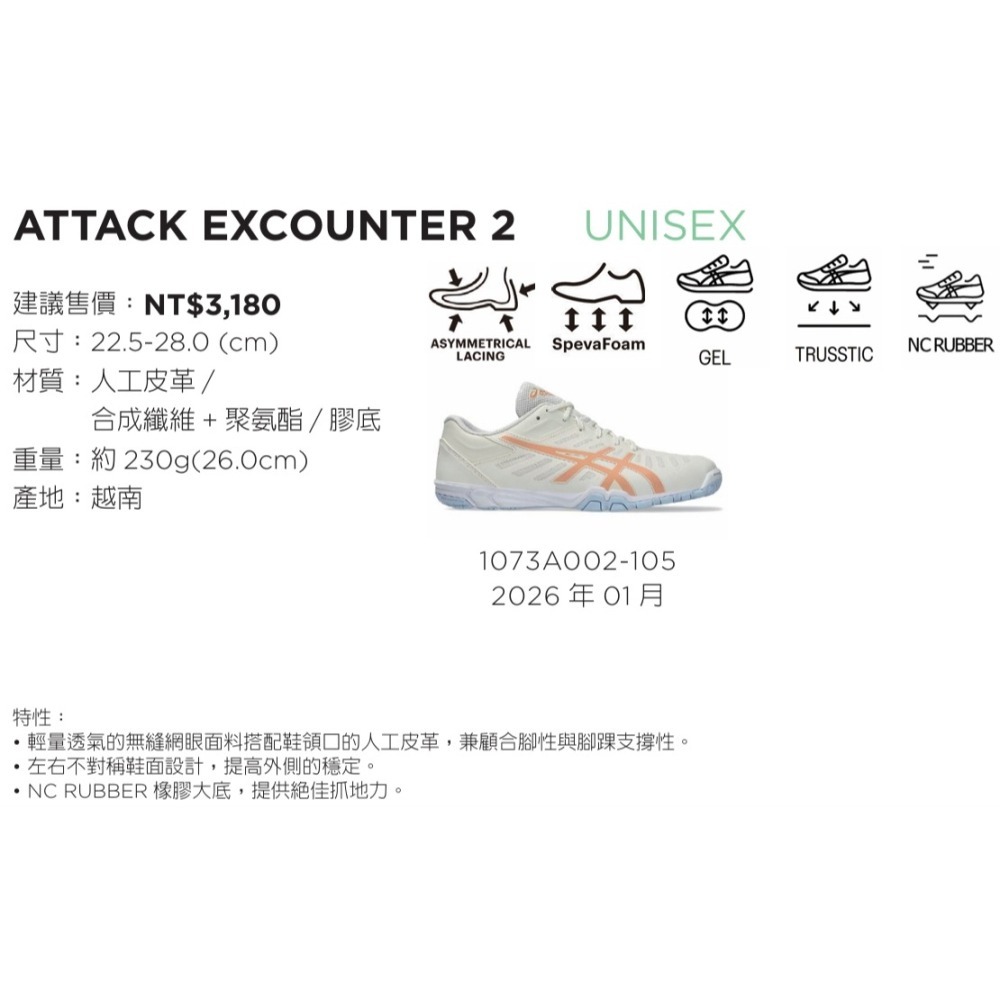 ASICS 桌球鞋🏓🏐⚽️乒冠體育🏸⚾️🏓 ATTACK EXCOUNTER 2 1073A002-105
