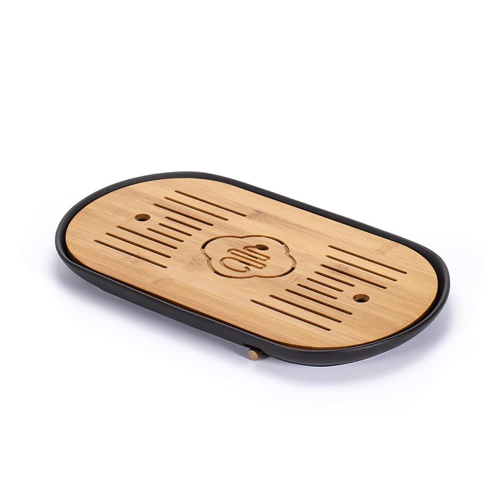 材質:陶瓷、竹片。 內容:竹茶盤*1個、排水管*1條。
