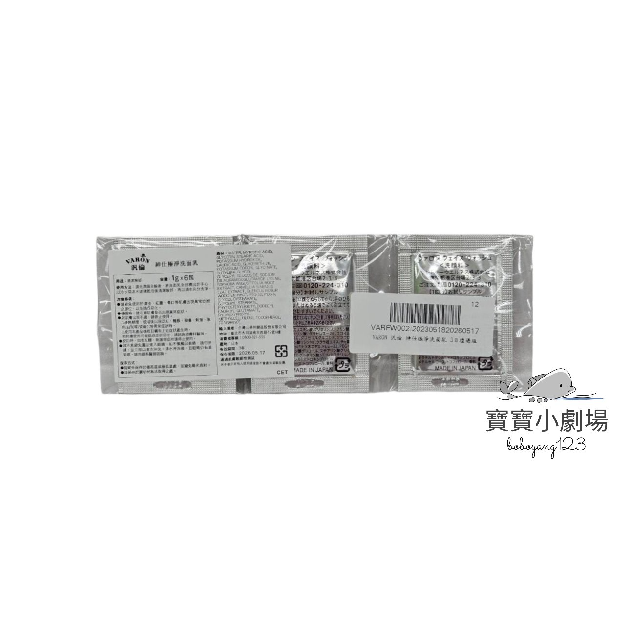 【SUNTORY三得利】VARON汎倫 紳仕極淨洗面乳(隨身包1g*6包)台灣官網正品 寶寶小劇場