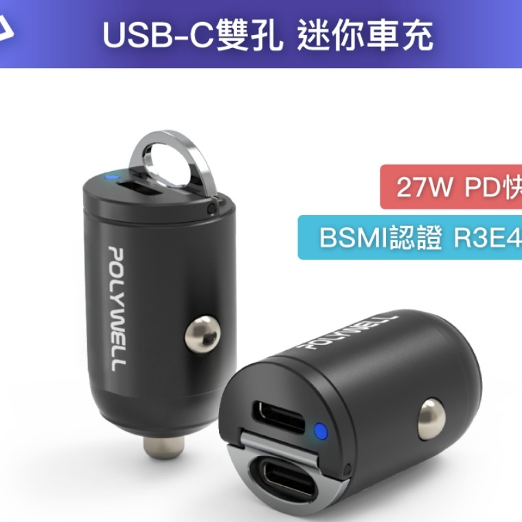 - 市面上體積最小的雙Type-C孔車用充電器, 可完全隱藏於點煙座不凸出