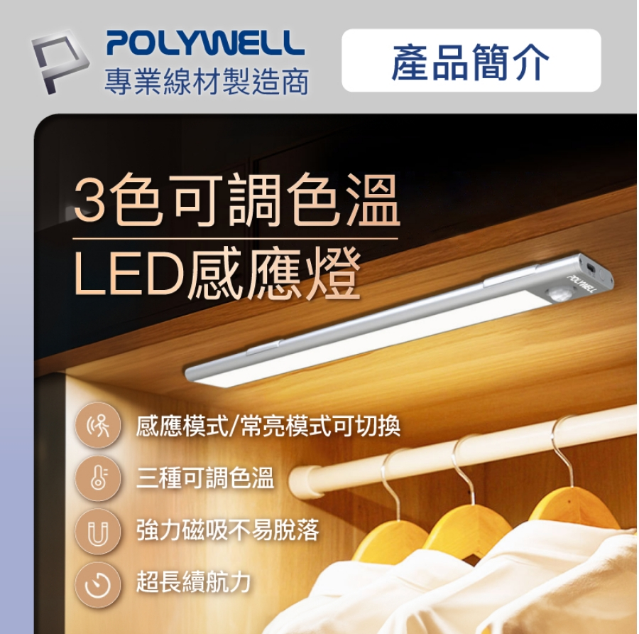 ◎ 產品: POLYWELL 磁吸式LED感應燈