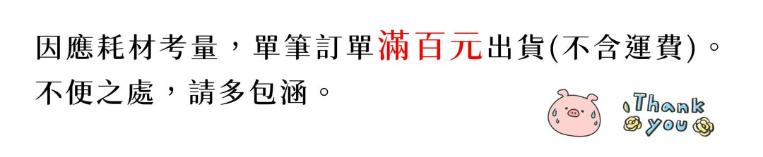 ❷單筆訂單需滿「百元」(不含運費)才出貨喔,以破壞袋優先出貨。
