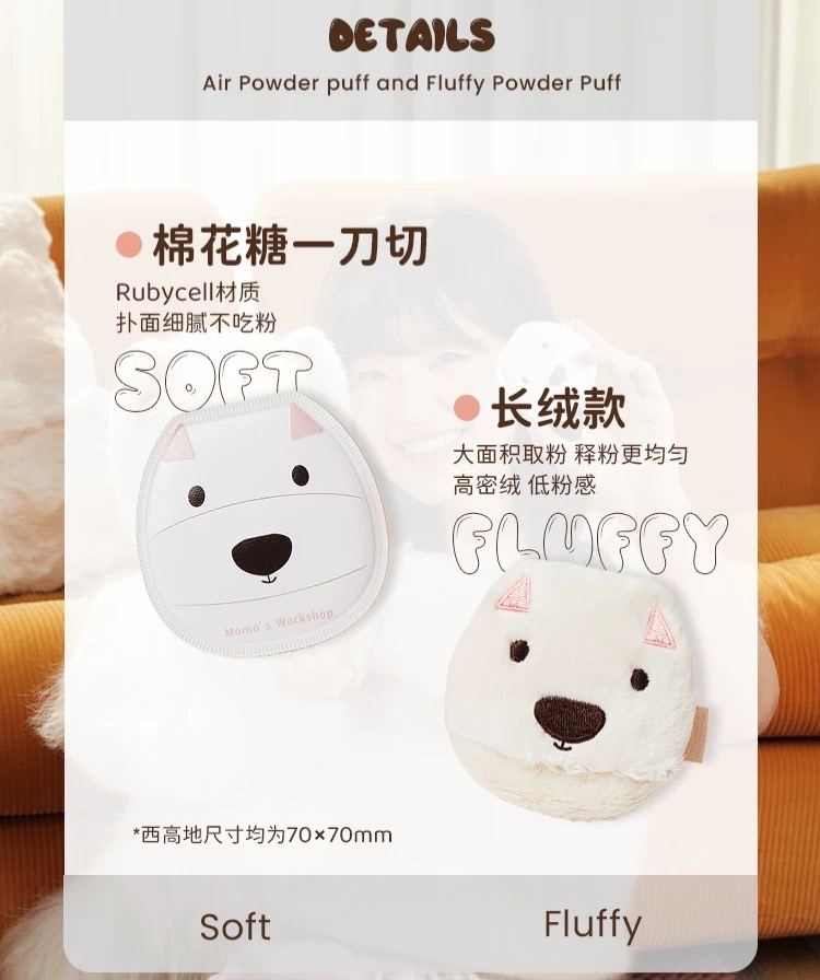 西高地底妝:棉花糖+長絨,材質為RUBYCELL、長絨,尺寸為7*7CM。
