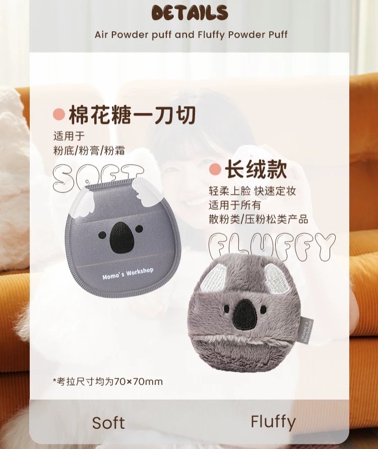 無尾熊底妝:棉花糖+長絨,材質為RUBYCELL、長絨,尺寸為7*7CM。