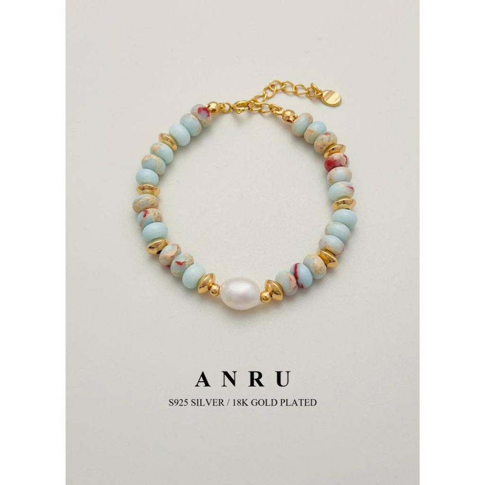 |ANRU 藍韻|純銀壽山石珍珠手鍊 |S925 18K金色 天然珍珠 手鍊 手環 輕奢 x 優雅 x 力量