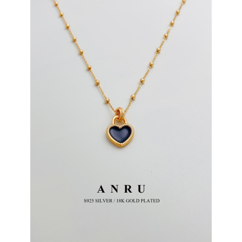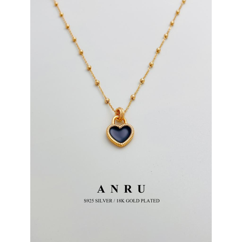 |ANRU 夜心|純銀滴釉愛心項鍊 |S925 純銀 18K金 愛心 鎖骨鍊 項鍊 輕奢 x 優雅 x 心意