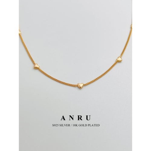 |ANRU 心心相連|純銀項鍊 |S925 純銀 18K金 鎖骨鍊 項鍊 輕奢 x 優雅 x 愛心