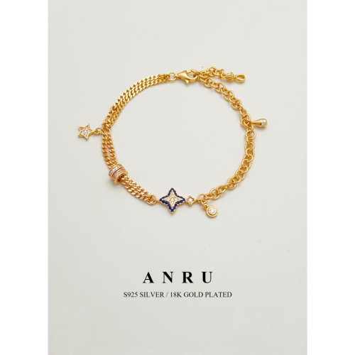|ANRU 星願|純銀鋯石手鍊 |S925 18K金色 天然珍珠 手鍊 手環 輕奢 x 優雅 x 光芒