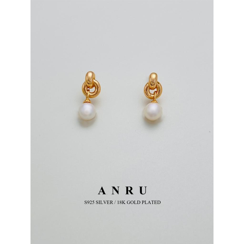 |ANRU 綺環|純銀珍珠耳環 |S925 純銀 18K金色 珍珠 耳環 輕奢 x 優雅 x 質感