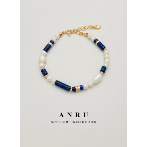 |ANRU 靜藍|純銀青金石珍珠手鍊 |S925 18K金色 天然珍珠 手鍊 手環 輕奢 x 力量 x 智慧
