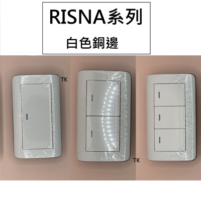 影片為RISNA開關示意影片,此品項為白底銅邊款。
